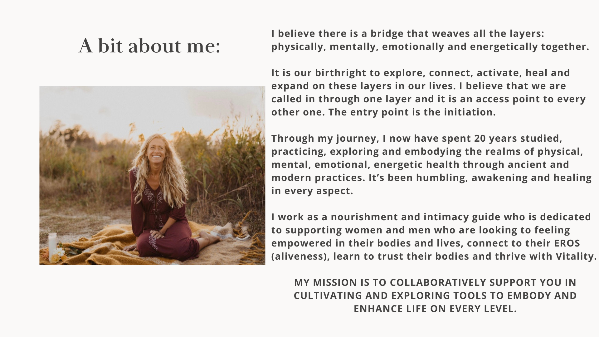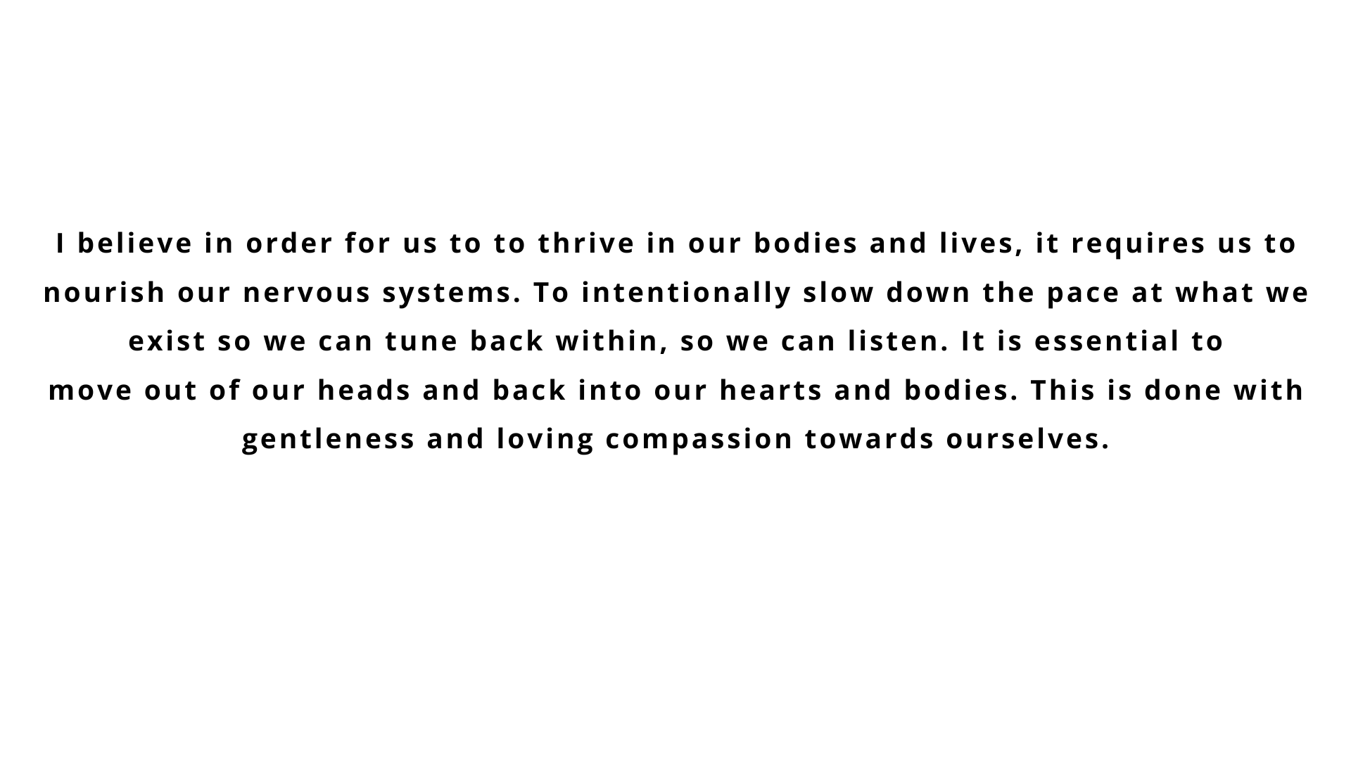 I believe it is crucial that we return back to the body. To slow down, to bring presence, to nourish and restore, to listen and honor the wisdom within, and to live from there.