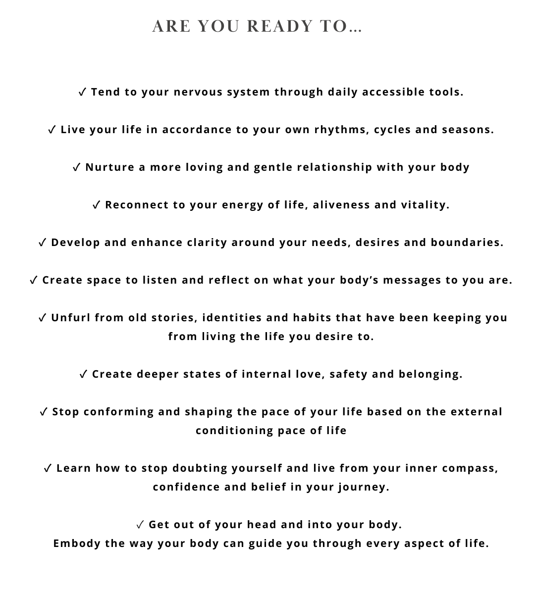 This Back to the Body Journey is the 2026 version of me, my body of work, the vision I tend to for all of us to make a devotional vow to connect and reconnect to the wise Oracle of our bodies many times over, and the humble journey of being human living in these dynamic times.
