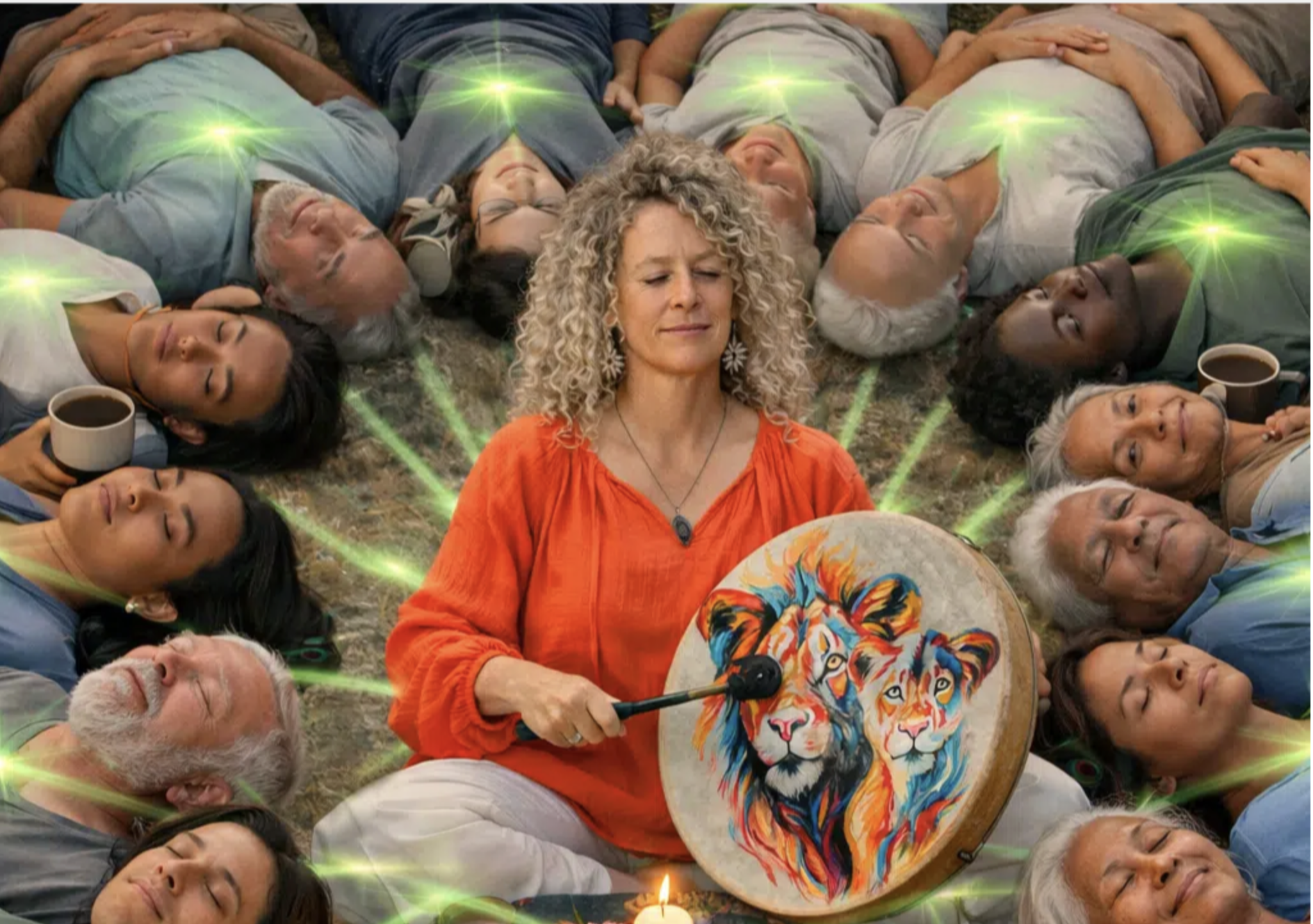 Off we go into a guided meditation to get grounded and centered. Ceremonial songs, drumming, toning (vibrational, sound healing) and deep trance follows suit.